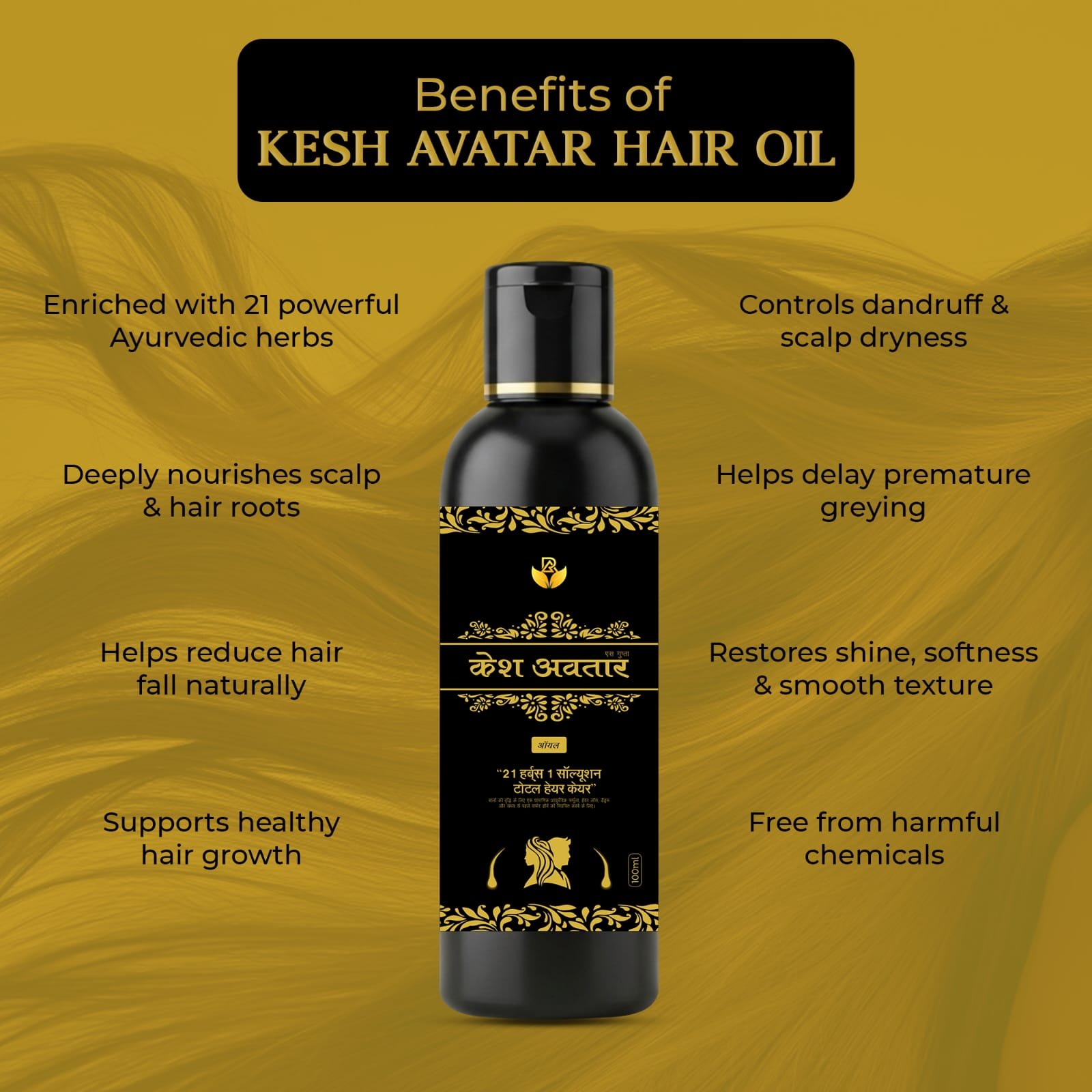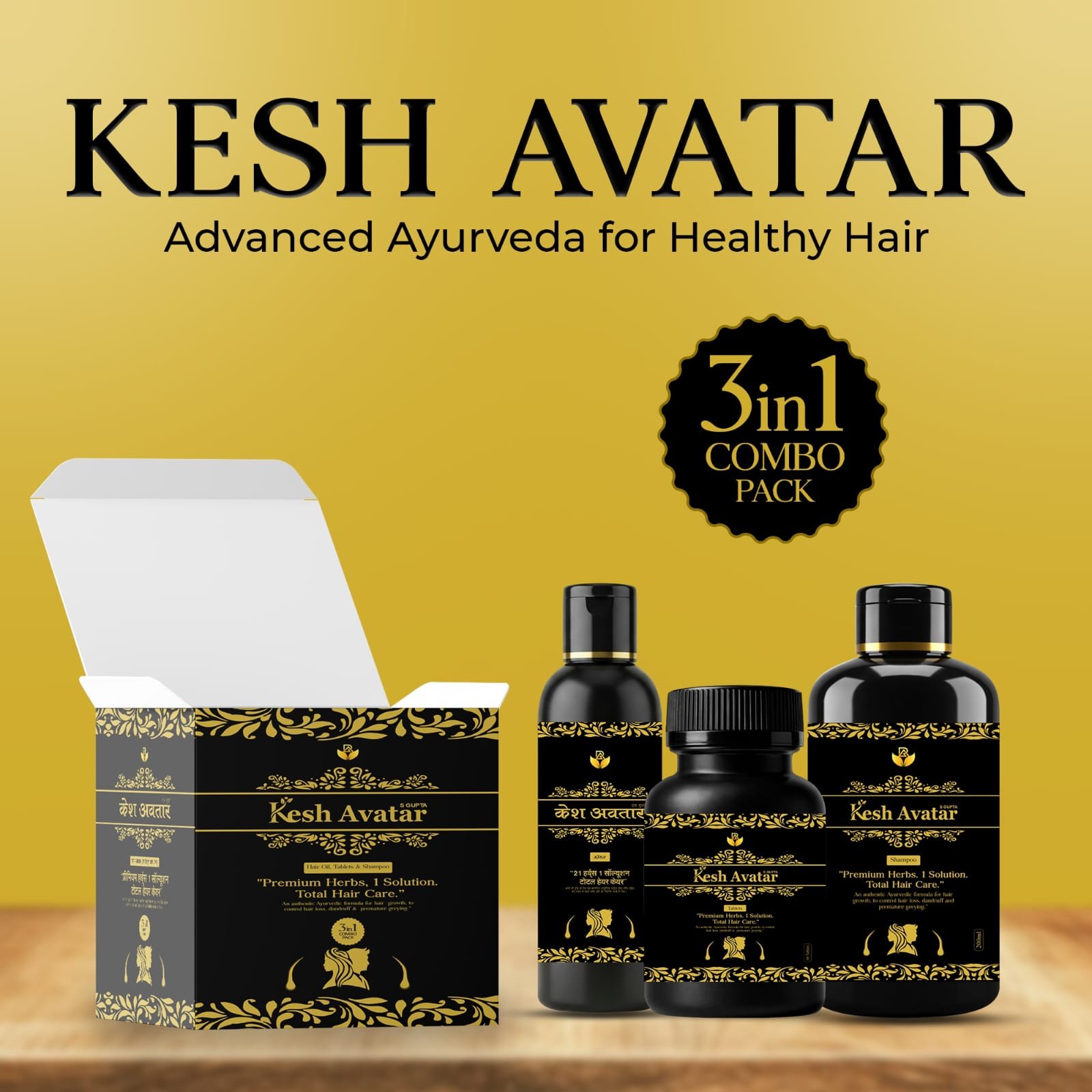 Kesh Avatar 21 Herbs 3-in-1 Total Hair Care Kit is a scientifically curated Ayurvedic formulation designed to treat hair fall, thinning hair, dandruff, and weak roots from the inside and outside.