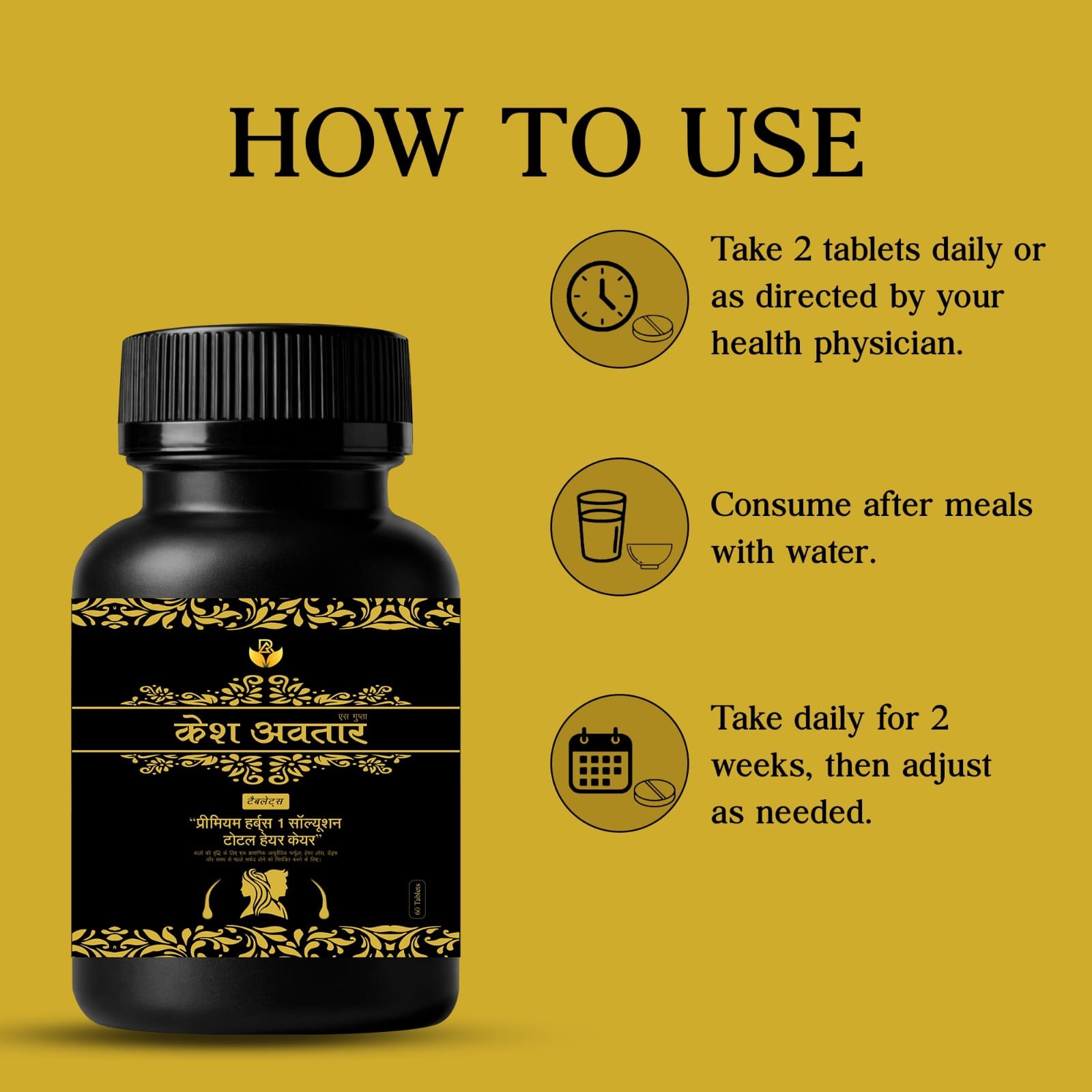 This complete kit includes Herbal Hair Oil, Mild Herbal Shampoo, and Hair Nutrition Tablet, working together to deliver visible and long-lasting results.